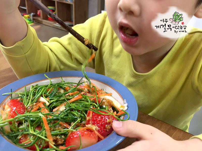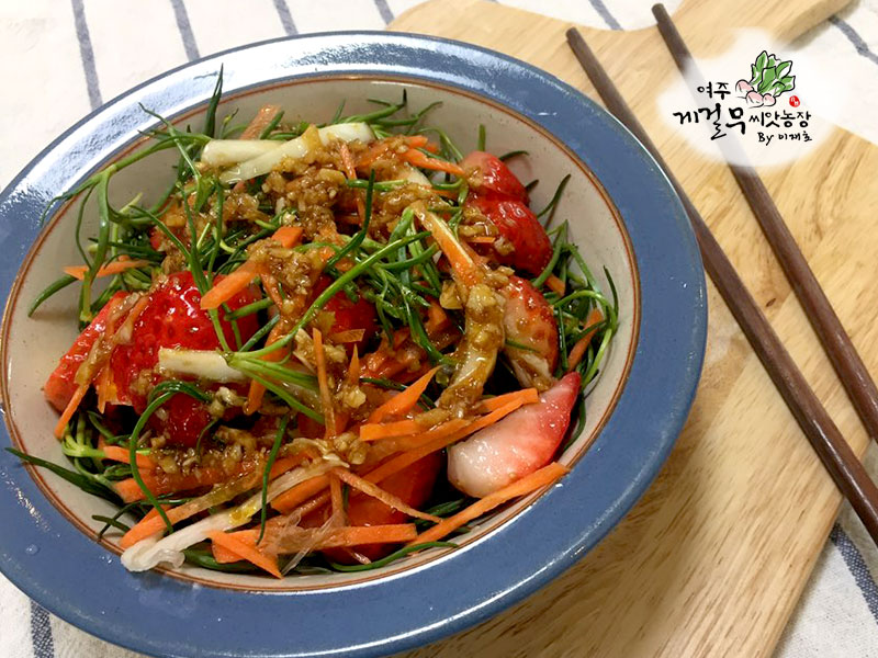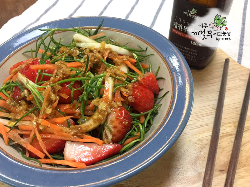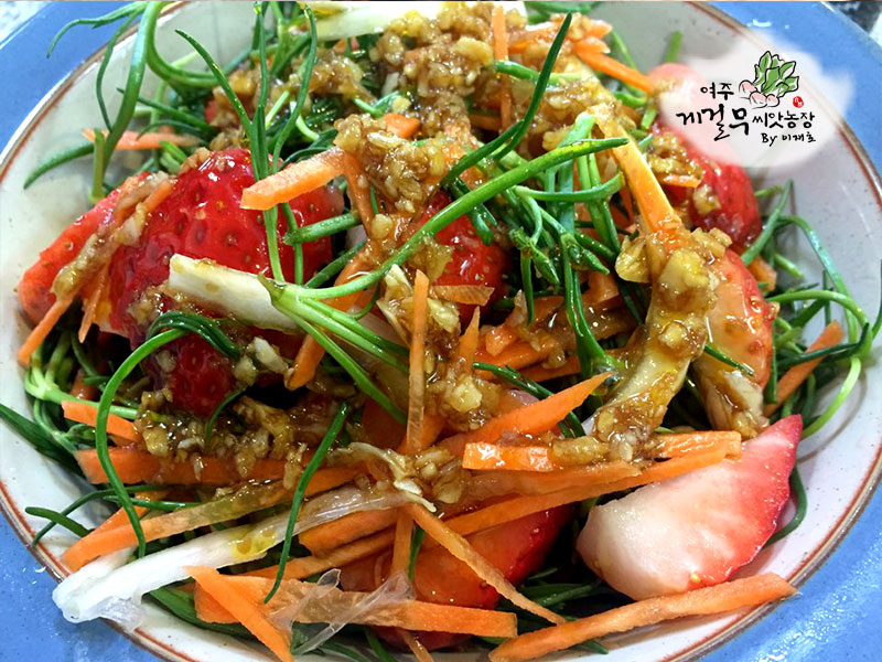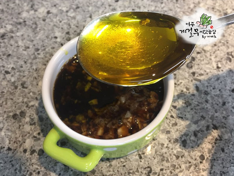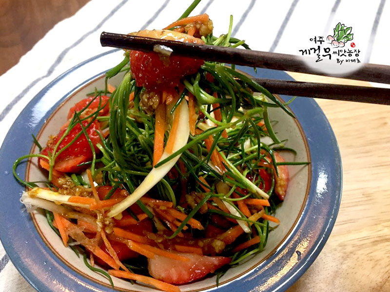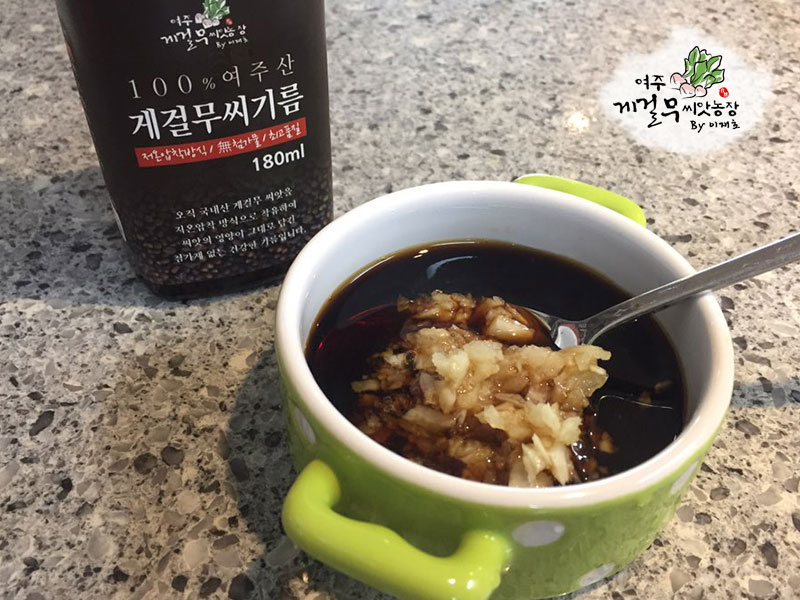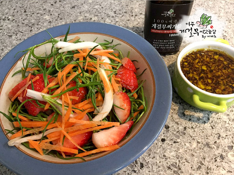 드레싱 : 게걸무씨앗기름 3큰술 + 간장 2큰술 + 식초 2큰술 + 설탕 1큰술 + 마늘 1/2큰술